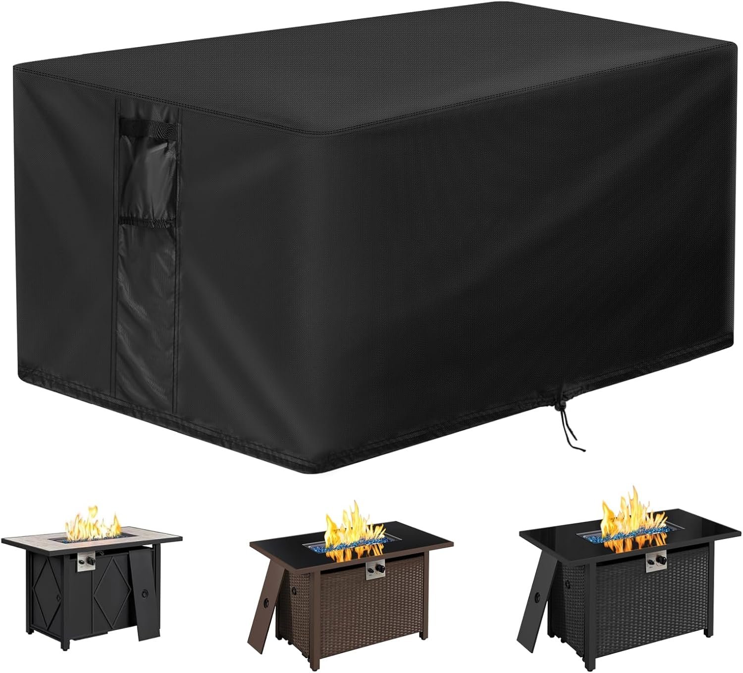 About this item Rectangular Fire Pit Cover Size: 50 x 32 x 15 inch, suitable for 50 x 32 inch rectangle fire pit table, Please measure your fire pit before purchasing Firepit Cover Material: The fire pit cover is made of high-quality waterproof material, effectively preventing rain and moisture from damaging the fire pit table, ensuring it stays dry over Windproof Fire Table Cover: Equipped with a drawstring and bottom buckle, the cover fits snugly around the firepit, effectively resisting strong winds and preventing it from being blown away Fireplace Cover with Handle and Vent: The cover features convenient handles for easy installation and removal. Additionally, the vent design helps prevent moisture buildup, keeping the interior of the fire pit well-ventilated All Season Protection for Your Fire Pit: Not only does it shield against wind and rain, but it also prevents dust and light from affecting the fire pit, providing comprehensive protection › See more product details