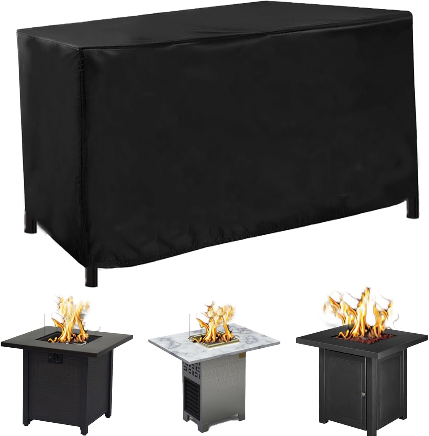 About this item 【Fire Pit table cover】:This cover is made of oxford fabric with PU coating, which is more weather-resistant, tear-resistant and wear-resistant, protect funiture from dust, dirt, sun, rain or other damage. 【 Fire Pit Table Covers】Size: 44″L x 26″W x24″H. The cover is designed to fit most outdoor rectangular firepits,Perfectly compatible with most popular brands firepits,grill tables, prep tables and more. Please check the size of your fire table carefully before ordering!!! 【Waterproof】: Adopt high-density and durable Waterproof 600D Heavy-Duty oxford material, Both the outer and inner layers are professionally waterproofed, you don’t need to worry about furniture getting wet and damaged even in harsh outdoor environments! 【Windproof Design】: 1 drawstring outlets and 4 corner click-close straps provides a customizable fit with exceptional security in the hurricane conditions. Note: If the wind is too strong, we suggest that you can put some stones or heavy objects on outdoor table cover to better prevent the cover being blow off.Note: Please cool down the fire pit for 30 mins before covering on!! 【WARM TIPS】: Water tends to gather lower, It is better to place some slightly higher objects under table cover to prop up the middle part, so that the water and debris can flow down and extend the life of the patio furniture cover. › See more product details